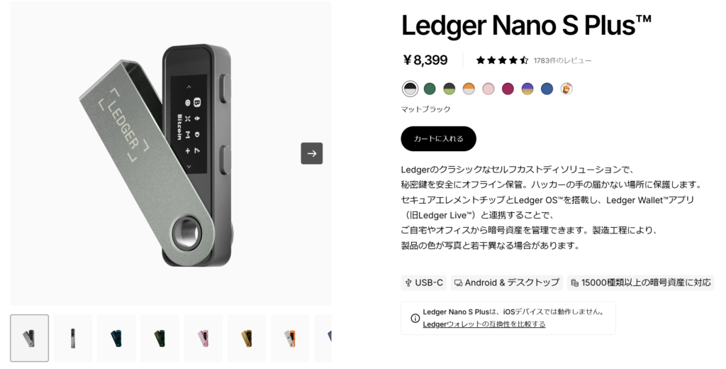 Ledger Nano XはiOSでも使うことができます。iPhoneの人はこちらを購入してください。