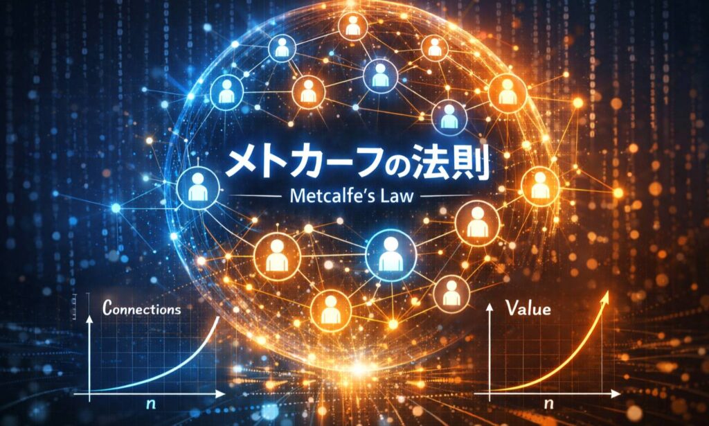 かみ砕いて説明すると、’’ネットワークに参加する人が増えると指数関数的にその価値も急上昇する’’